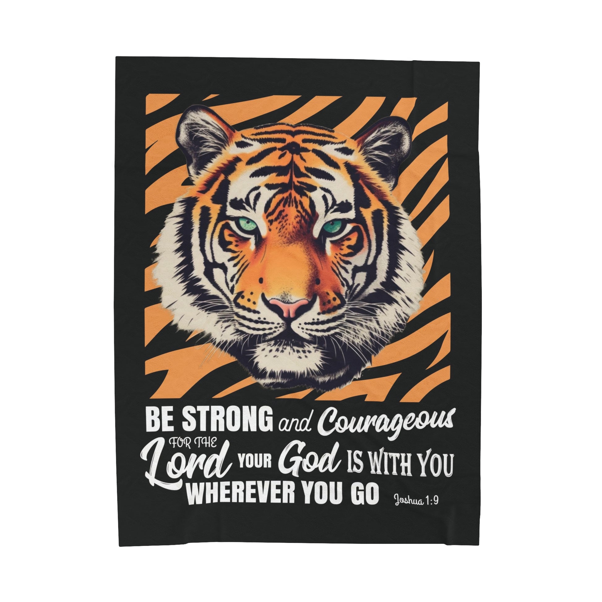 Bible Verse Blanket - Joshua 1:9 Be Strong and Courageous | Eye of The Tiger Blanket, Kids Scripture Blanket