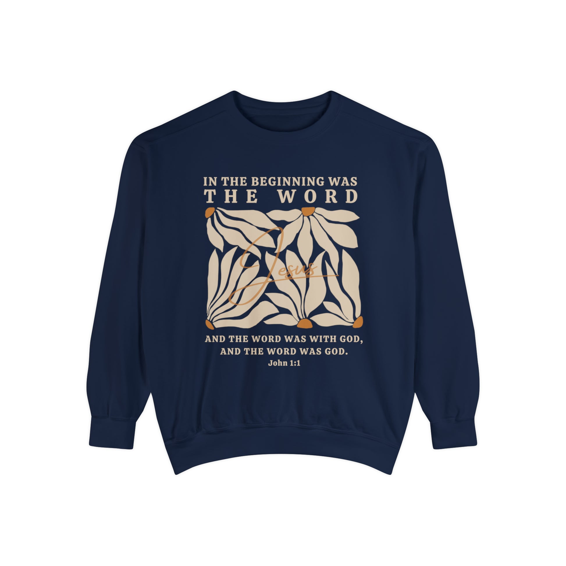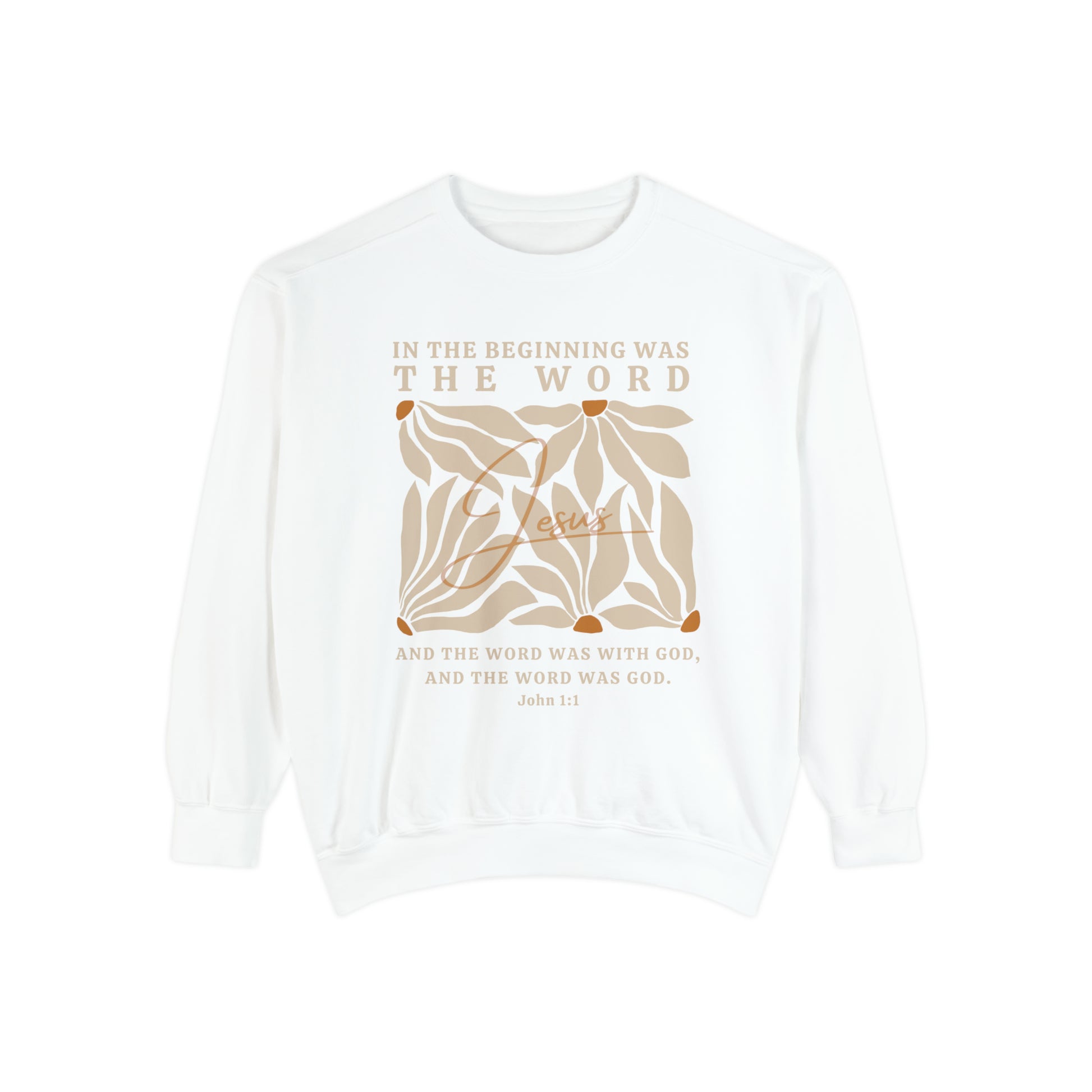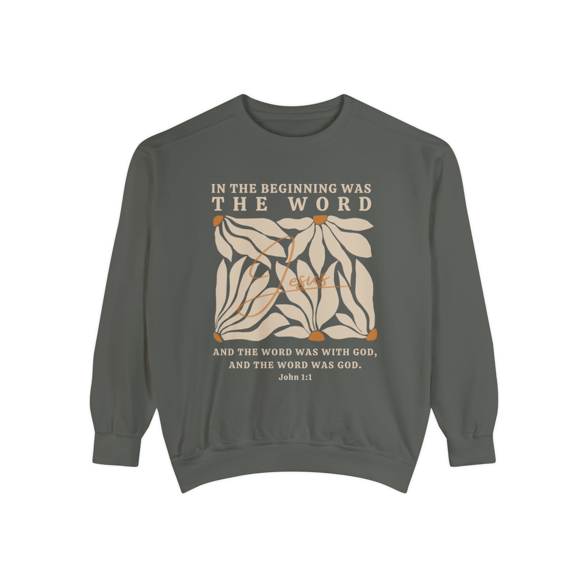 Christian Sweatshirt - John 1:1 In The Beginning Was The Word | Comfort Colors Sweatshirt | Bible Verse Sweater