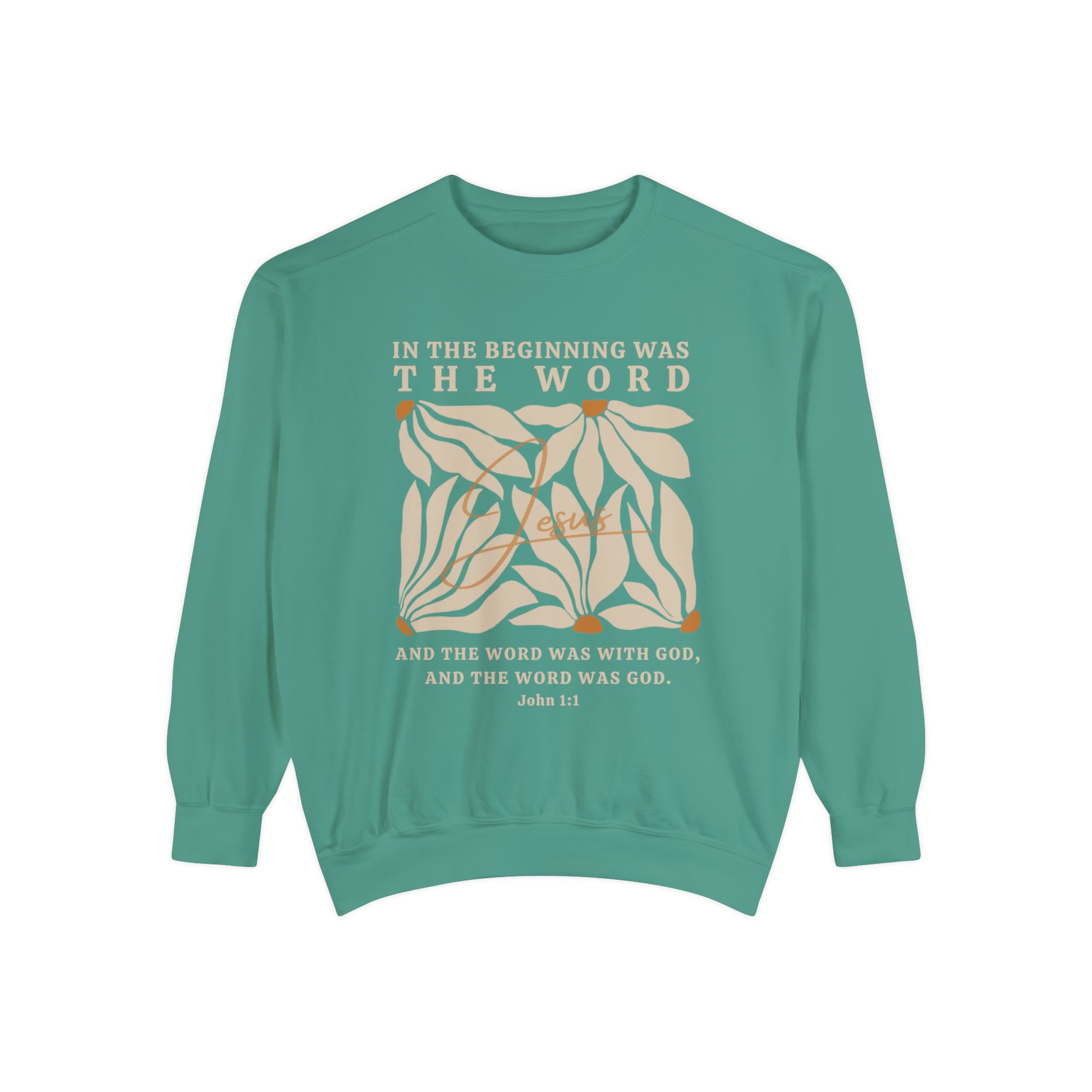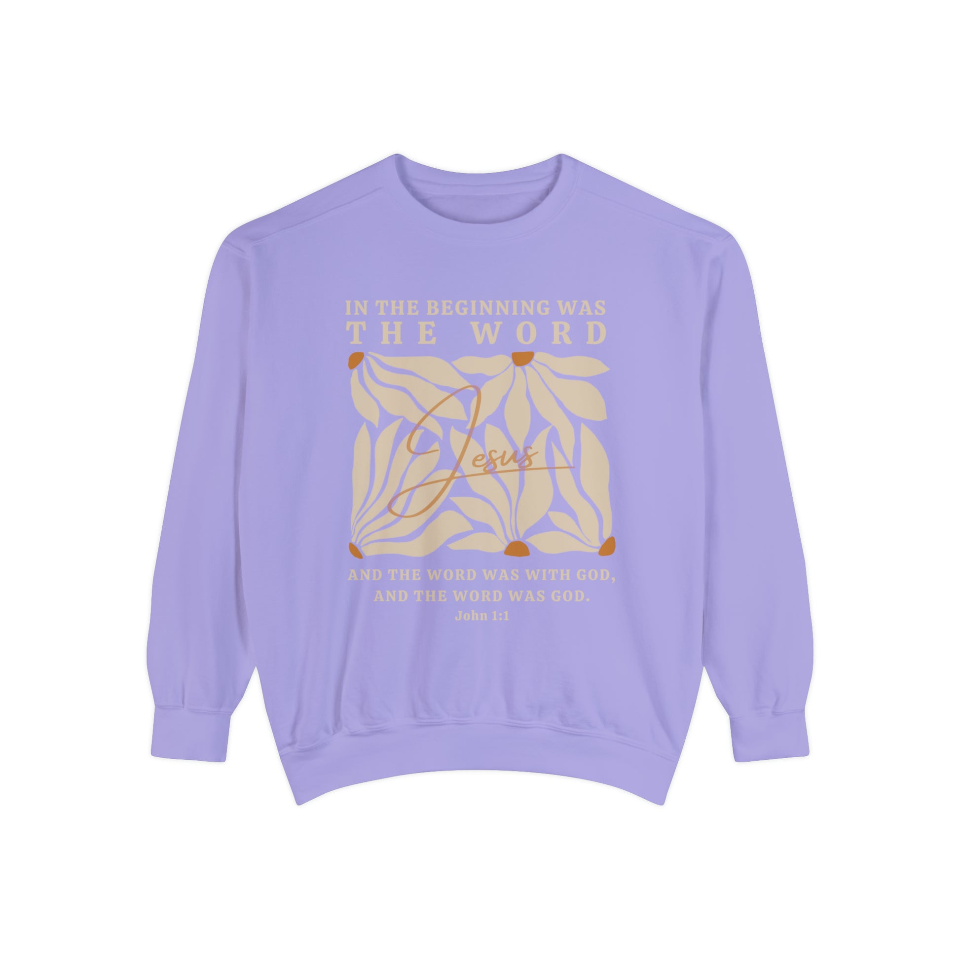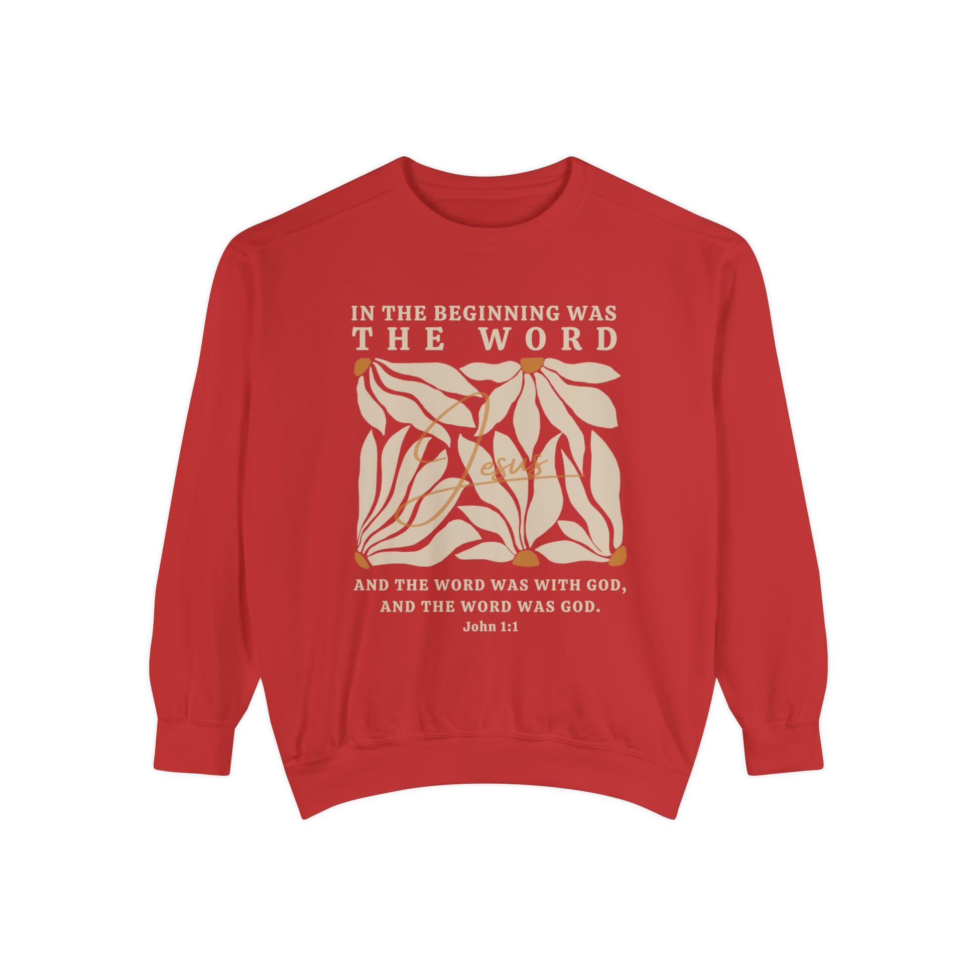 Christian Sweatshirt - John 1:1 In The Beginning Was The Word | Comfort Colors Sweatshirt | Bible Verse Sweater