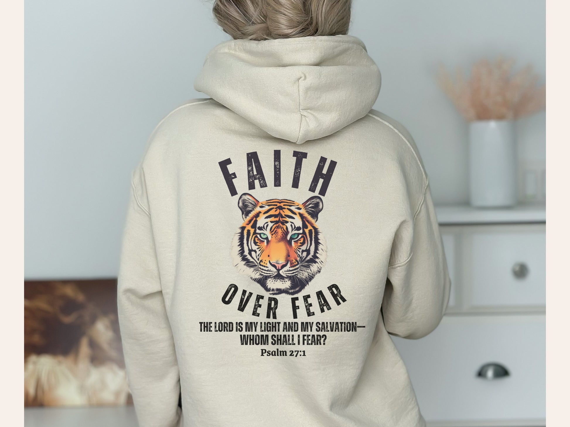 Faith Over Fear Hoodie - Whom Shall I Fear Psalm 27 - Christian Hooded Sweatshirt
