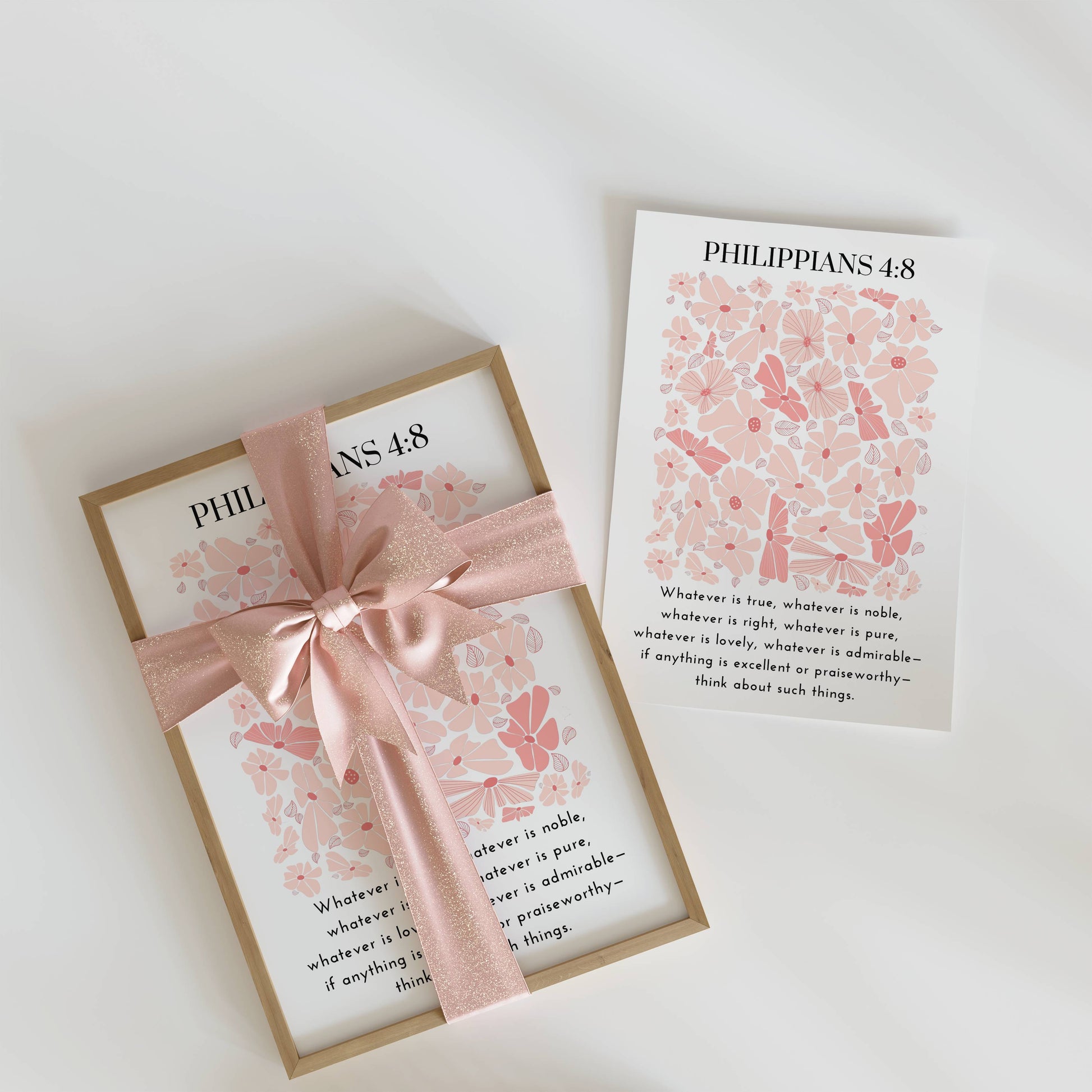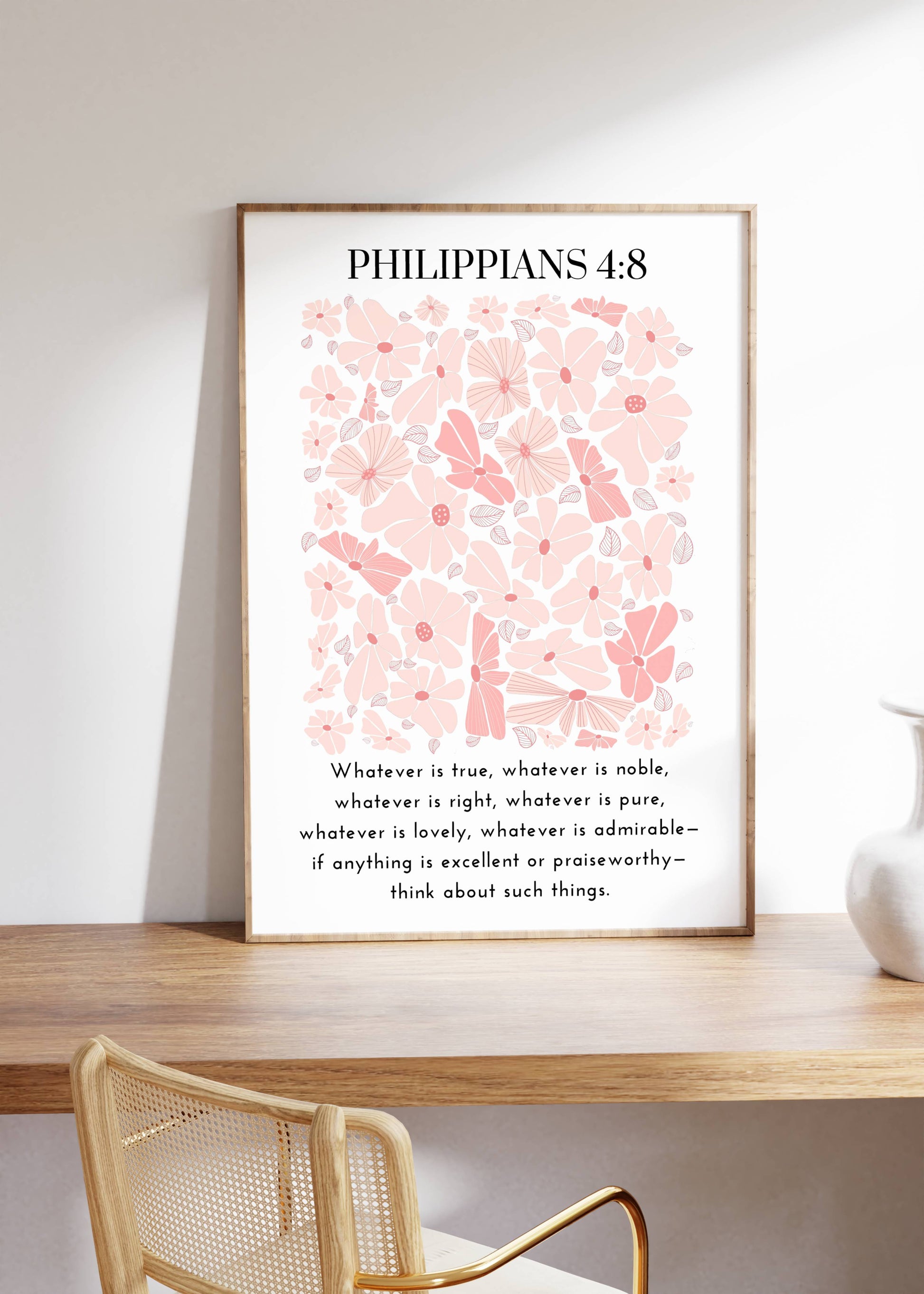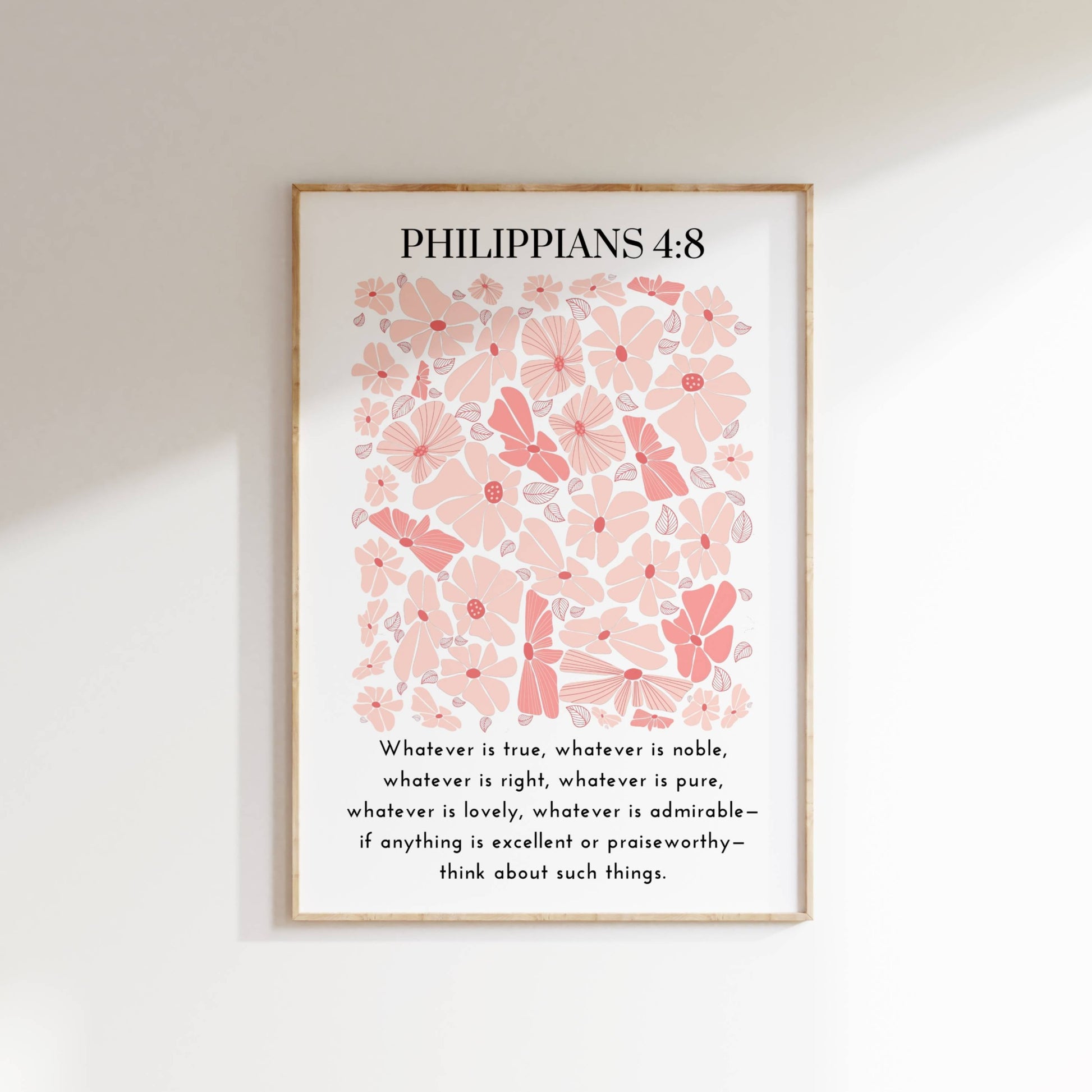 Philippians 4:8 - Bible Verse Wall Art | Floral Art, Christian Wall Decor