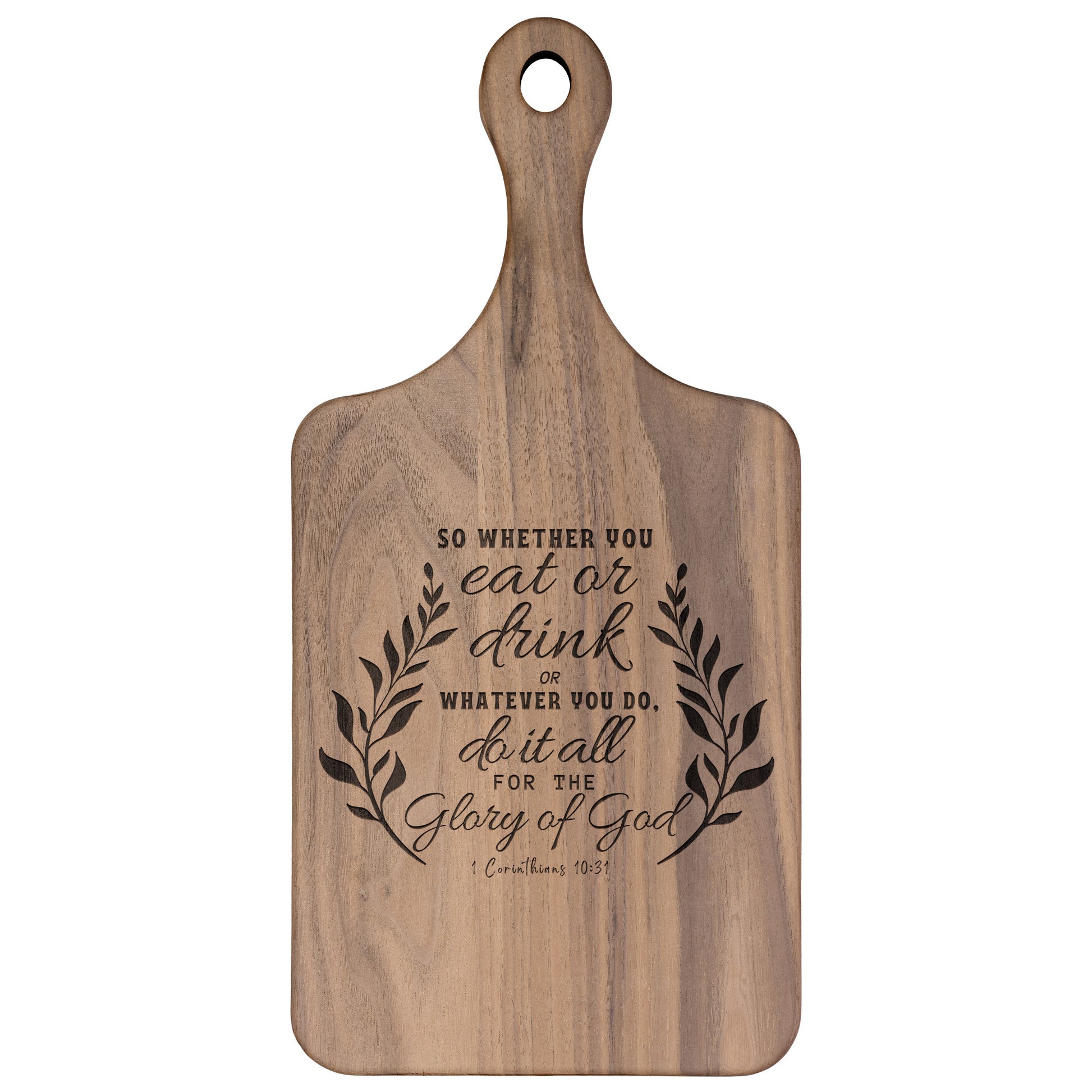 Wooden Cutting Board with Engraved Bible Verse 1 Corinthians 10:31 - Paddle Chopping Board