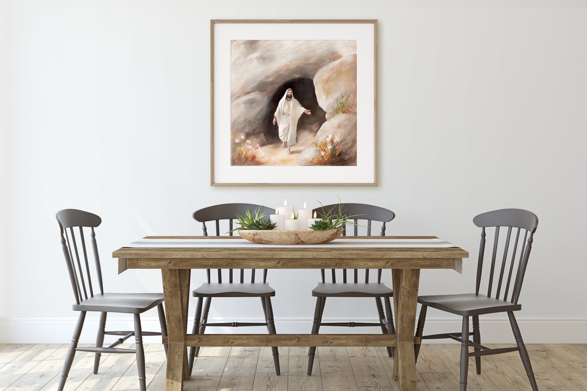 Elevate your space with this 'Jesus Is Risen' wall art, perfect for any Christian home. This exquisite piece features Jesus after he is risen from the dead, celebrating the resurrection of Jesus Christ. Ideal for Easter wall decor or year-round display, it's a beautiful reminder of hope and renewal.