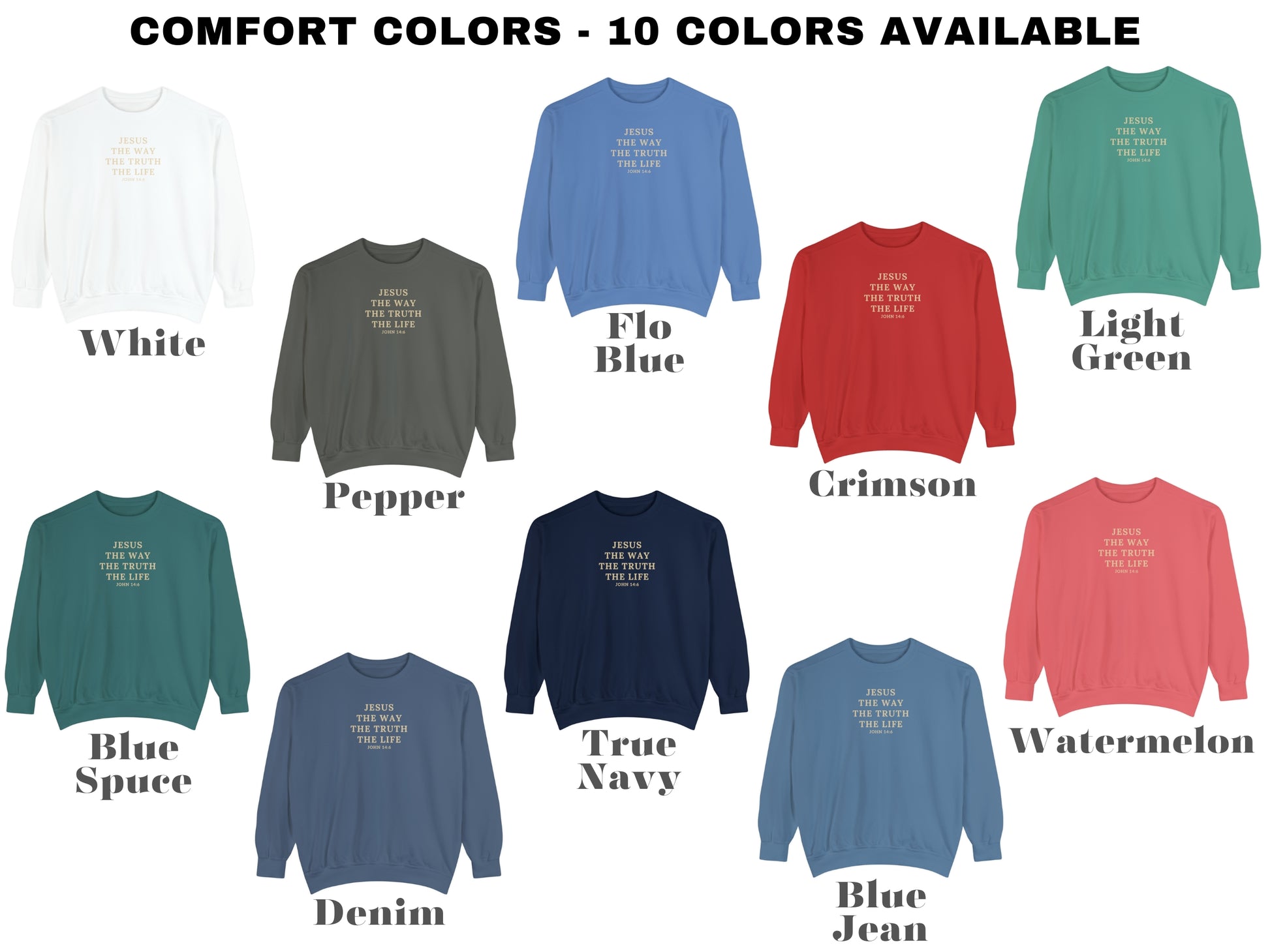 Jesus is The Way The Truth The Life - John 14:6 Sweatshirt | Comfort Colors Sweatshirt | Bible Verse Sweater