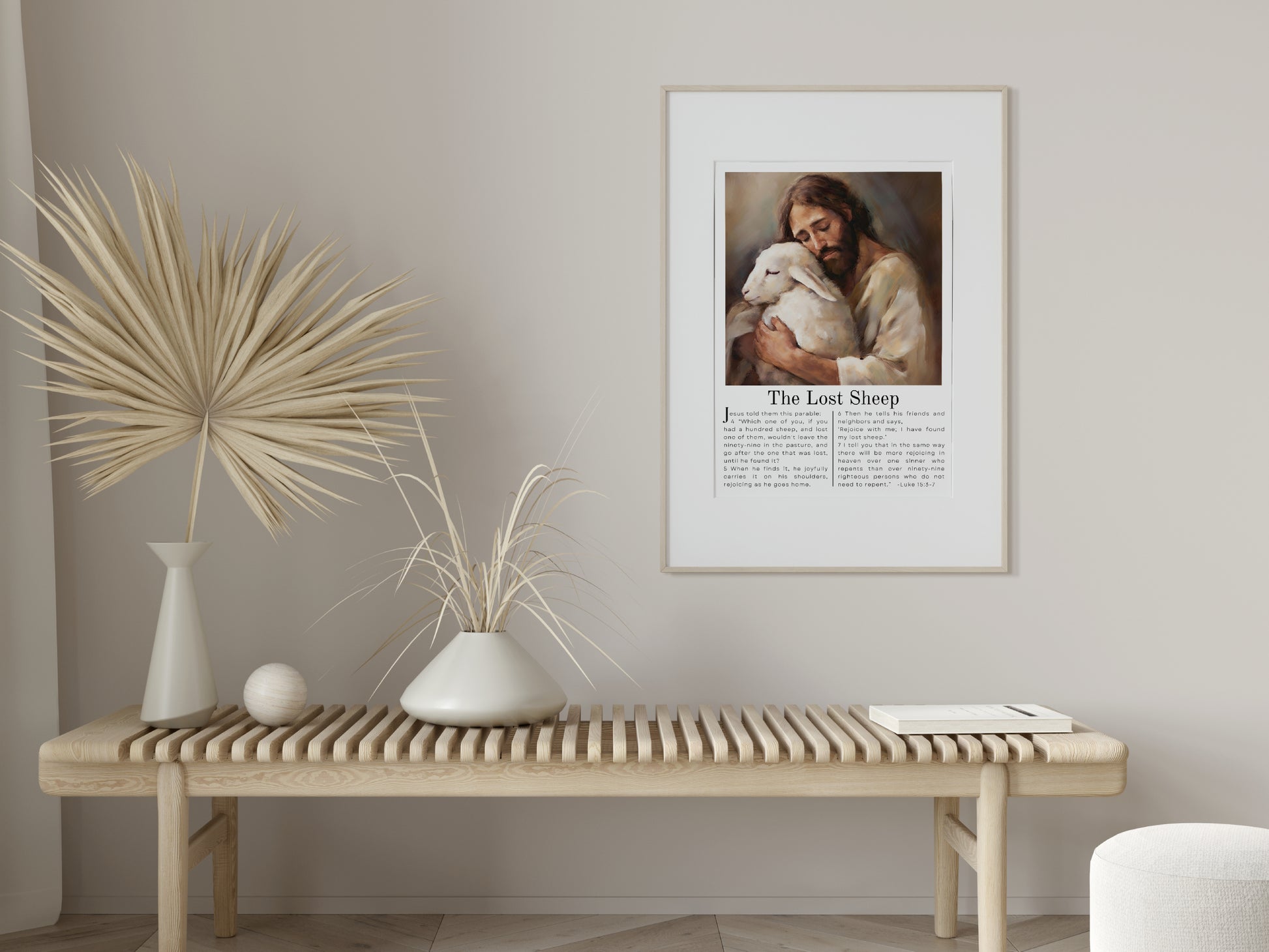 Parable of The Lost Sheep | Bible Verse Wall Art - Luke 15:3 | Jesus Art Painting - Unframed Print