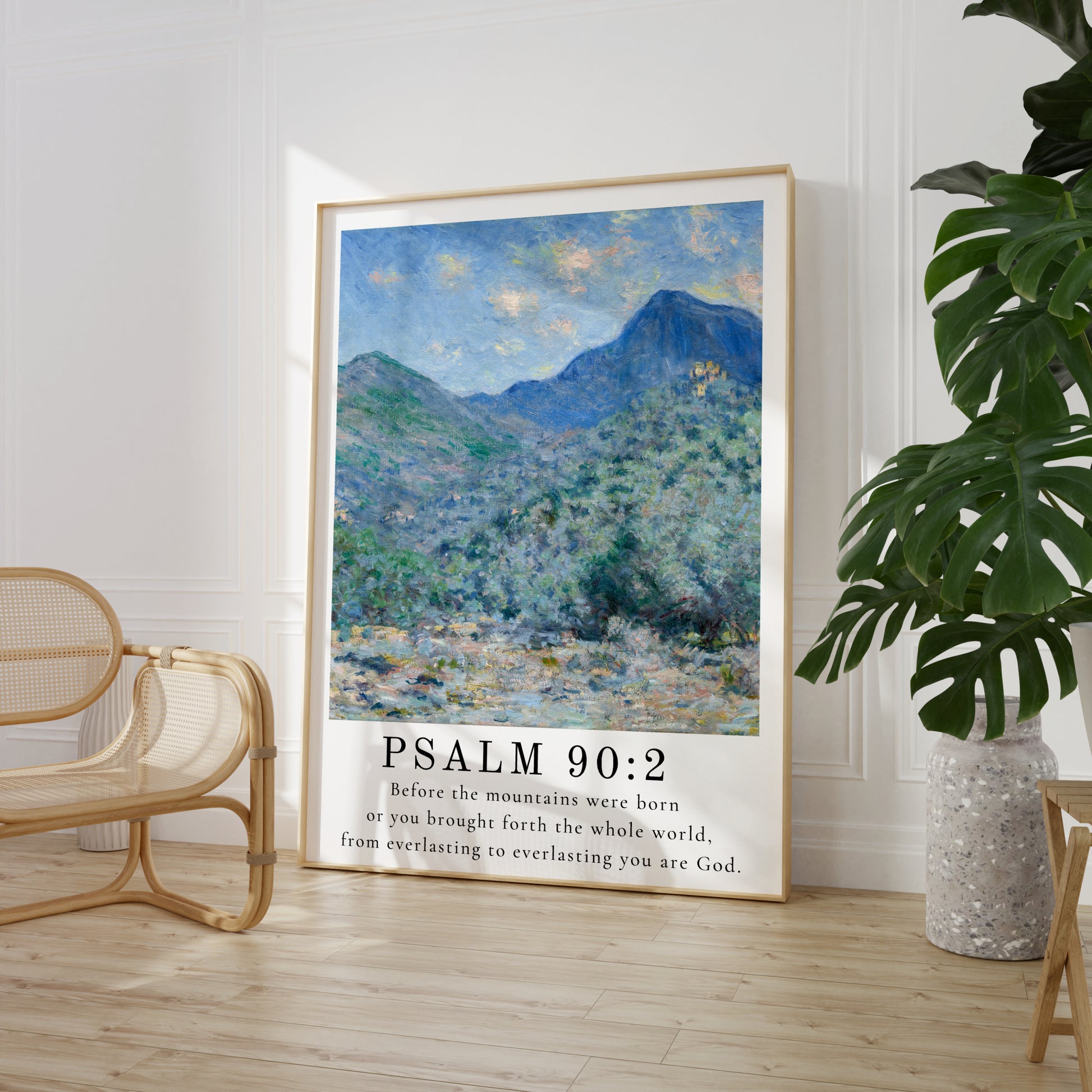 Psalm 90:2 Scripture Wall Art | Vintage Claude Monet Painting with Bible Verse - Unframed Print