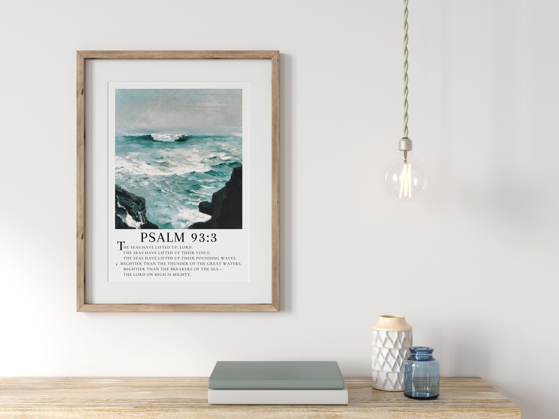 Psalm 93 Scripture Wall Decor - Mightier Than the Waves | Inspiring Seascape Painting with Bible Verse