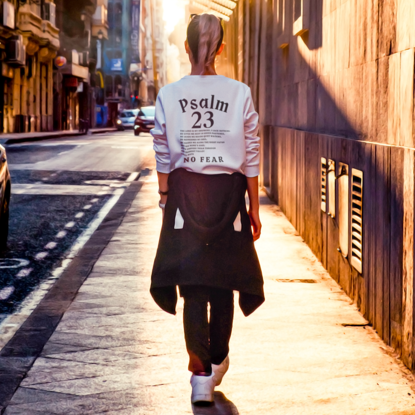 Wrap yourself in the warmth of faith with this Psalm 23 Sweatshirt. This cozy and stylish sweater is more than just apparel; it's a wearable reminder of the comforting words from the Bible. Crafted for both men and women, this Scripture Sweatshirt is a unique piece of Christian clothing.